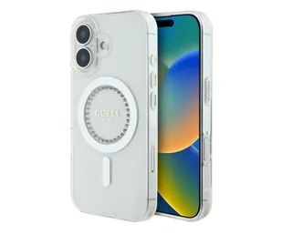 Guess IML Rhinestones MagSafe do iPhone 16 Plus Biały