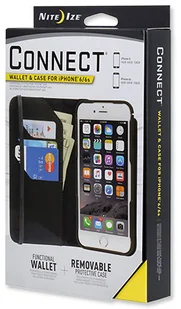 Zestaw składający się z obudowy i etui Connect Wallet & Case przeznaczonej na telefon Apple iPhone 6/6s. Otwierane na bok etui typu Folio posiada z jednej strony cztery przegródki na karty, dokumenty lub gotówkę, a z drugiej montaż do obudowy Connect Case. Etui z zewnątrz wykonane jest ze skóry, od wewnątrz z miękkiego materiału doskonale chroniącego przenoszoną zawartość i ekran telefonu. Przed przypadkowym otwarciem całość zabezpiecza elastyczna tasiemka wykonana z wytrzymałego oraz rozciągliwego materiału TPU (termoplastycznego poliuretanu).