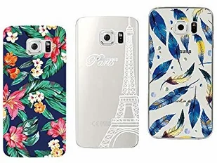 Samsung NOVAGO Novago etui ochronne, kompatybilne z Galaxy S6 Edge Plus (5,7 cala), wykonane z miękkiego żelu, wytrzymałe, 3 sztuki wielokolorowe 7) S6EdgePlus-FleurBleuTourBlancPlumeBleu