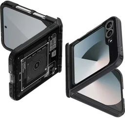 Etui Spigen Ultra Hybrid Pro Samsung Galaxy Z Flip6 Hybrydowa konstrukcja Nowoczesne etui od marki Spigen z serii Ultra Hybrid Pro wykonane zostało z połączenia wysokiej jakości termoplastycznego poliuretanu oraz trwałego poliwęglanu. Gwarantuje wytrzymałość na najwyższym poziomie , przy zachowaniu minimalistycznego wyglądu. To wyjątkowe rozwiązanie dla wszystkich, którzy pragną połączyć elegancki design z najwyższą jakością ochrony. * Przedmiotem sprzedaży jest samo etui, pozostałe akcesoria widoczne na zdjęciach służą jedynie przedstawieniu jego funkcjonalności Kolor producenta: Zero One (kolor etui: szary z nadrukowanym motywem odwzorowującym wewnętrzny układ komponentów smartfona / kolor ramki: przydymiony szary) Doskonale dopasowane Konstrukcja pokrowca została zaprojektowana z myślą o wygodzie użytkowania.