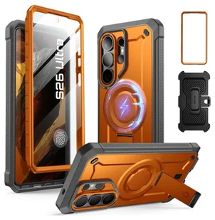Supcase Unicorn Beetle Pro Mag MagSafe to kompletne rozwiązanie ochronne typu full-body, które łączy pancerne zabezpieczenie z wszechstronnością MagSafe. Wykonane z połączenia amortyzującego termopoliuretanu (TPU) oraz mocnego poliwęglanu (PC), spełnia normy wojskowe Mil-Grade, zapewniając maksymalną ochronę przed upadkami. W zestawie otrzymujesz dwie przednie ramki - z wbudowaną powłoką z poliwęglanową lub bez - co pozwala dostosować etui do własnych preferencji i potrzeb. Wbudowany pierścień magnetyczny zapewnia pełną kompatybilność z technologią MagSafe, umożliwiając bezprzewodowe ładowanie oraz stabilne mocowanie do akcesoriów. Ukryta podstawka typu kickstand umożliwia wygodne oglądanie treści w trybie poziomym i pionowym, a obrotowy klips pasowy pozwala na bezpieczne noszenie telefonu bez konieczności trzymania go w kieszeni.
