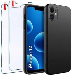 krainaGSM ZESTAW Etui do iPhone 12 | Matowy Czarny Silikon Slim + 2 sztuk Szkło