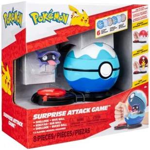 Pokemony — Gra Surprise Attack + figurka Shellder oraz Dive Ball. Gra Surprise Attack to wspaniała propozycja dla wszystkich maluchów, które uwielbiają japońskie stworki i są gotowe, by stanąć do zupełnie nowego pojedynku między kolorowymi Pokemonami.