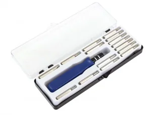 - W zestawie znajduje się aż 15 różnych końcówek + wkrętak zapewniają wszechstronne zastosowanie. Końcówki wykonane ze stali Chromowo-Wanadowej - będą służyć przez długie lata.