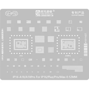 Metalowe sito AMAOE U-IP12 0.12 mm szablon do reballingu / naprawy procesora A18/A18 Pro do iPhone z serii 16