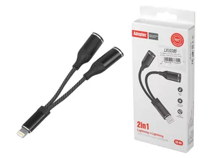 Adapter HF IPHONE LIGHTING 2 gniazda ładowanie+audio czarny