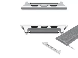 2x adapter Dodatkowe informacje: Adapter jest prosty w montażu. Wystarczy przełożyć prostą śrubkę przez pasek, a następnie włożyć go do otworów po obu stronach końcówki adaptera. Do instalacji nie potrzeba innych śrub lub śrubokrętów. Akcesorium wykorzystuje bezpieczny mechanizm blokujący, który prawidłowo ustawia adapter w zegarku Apple i utrzymuje go na swoim miejscu.