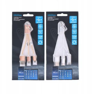 KABEL DO ŁADOWANIA - USB - micro + USB C - BRELOK - GRUNDIG - SREBRNY