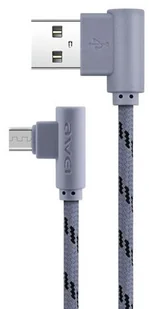 1 metr Kolor: Szary Typ złącza: Micro USB (kątowe) Model: Awei CL-90 Materiał: Wytrzymały oplot nylonowy Kompatybilność: