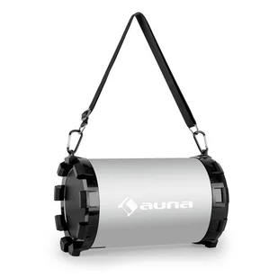 Urządzenia przewodowe, takie jak telefony komórkowe, odtwarzacze CD lub MP3 oraz inne zewnętrzne źródła dźwięku mogą być podłączone za pośrednictwem wejścia AUX. Wbudowana bateria 1000 mAh wyróżnia się długim czasem pracy, a jej ładowanie odbywa się łatwo za pomocą kabla USB podłączonego do komputera. Głośnik może być również zasilany przez 5-woltowy zasilacz prądu stałego (nie wchodzi w skład zestawu). W zestawie kabel do ładowania USB, kabel AUX i pasek na rękę. Wymiary: 280 x 185 mm.