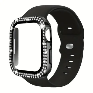 TEMU 2 szt./ Miękka i Wygodna Silikonowa Opaska Sportowa do Zegarka & Dekoracyjne Kryształki Ochronny Ekran -Upadkowy Ultra-Cienkie Szklane Etui, Do