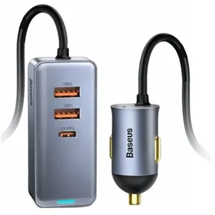 Ładowarka Baseus Ładowarka samochodowa Baseus Share Together 120W PPS 2xUSB-A 2xUSB-C z przedłużaczem - szara