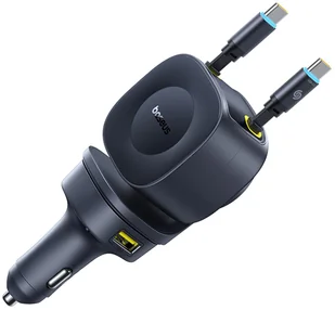 Ładowarka Baseus Ładowarka samochodowa USB-C USB-A ze zwijanymi kablami USB-C 60W - czarna Ładowarka samochodowa USB-C USB-A ze zwijanymi kablami USB-C 60W - czarna