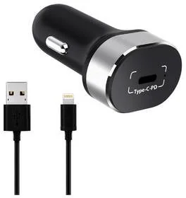 WG Zasilacz samochodowy USB-C PD 20W + Lightning kabel 1m 8879) Czarny