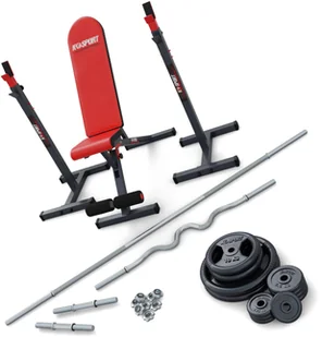 K-SPORT Ławka + Stojaki Do Wyciskania | Składana, regulowana + Zestaw sztang + Obciążenia 95kg