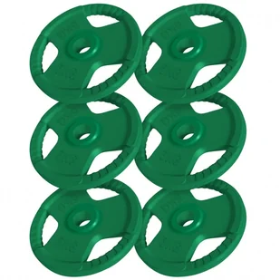 Do nadaje im doskonałą jakość powierzchni, która idealnie pasuje do dłoni. Na obwodzie znajdują się trzy uchwyty, których możesz wygodnie użyć podczas trzymania. Dzięki ryflowanemu profilowi i gumowaniu można łatwo je podnieść z podłogi i bezpiecznie trzymać. Otwór pasuje do gryfów o średnicy 50 mm. Na wszystkich talerzach wyraźnie jest wypisana ich masa, abyś mógł dokładnie dawkować obciążenie.