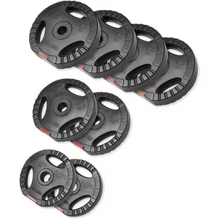 Obciążenie pasuje do wszystkich hantli o średnicy 30 mm. Ergonomiczny kształt Obciążenie o kształcie kierownicy zapewni Ci stabilny chwyt podczas wykonywania brzuszków oraz innych ćwiczeń wymagających trzymania go w rękach. Wyjątkowo ciche i bezpieczne Do produkcji użyto gęstej mieszanki cementowej, która została wyposażona w wytrzymałą powłokę z tworzywa sztucznego. Dzięki temu obciążenia są wyjątkowo ciche, bezpieczne dla podłóg i redukują ryzyko obrażeń podczas treningu.