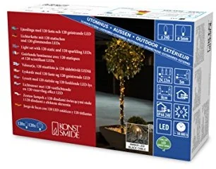 Konstsmide 3642 810 diod LED łańcuch świetlny, z efektem połysku/na zewnątrz (IP44)/240 Amber (120 glimmend)/zewnętrzny transformator 24 V/czarny przewód 3642-810