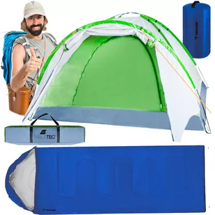Zestaw jest kompletny do rozłożenia Namiot pomieści 4 osoby Powierzchnia sypialni 200x200cm Namiot i śpiwór posiadają dwustronne zamki Zestaw jest łatwy w utrzymaniu czystości Wodoodporność zestawu Śpiwór posiada praktyczny kaptur chroniący głowę Stelaż namiotu jest wykonany z włókna szklanego Namiot posiada otwór wentylacyjny w dachu Kieszonka na drobiazgi w środku namiotu Moskitiera chroniąca przed owadami Po złożeniu zestaw zajmuje niewiele miejsca Śpiwór nie chłonie wilgoci i jest antyalergiczny Pokrowiec w zestawie