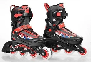 Łyżworolki Mico Funny 2w1 to wrotko-rolki wyposażone w kauczukowe kółka. Ponadto wrotko-rolki wyposażone są w bardzo dobre, wytrzymałe łożyska ABEC 5 Carbon. Wrotko-rolki przeznaczone dla użytkowników w zakresie wagi ciała 20-60kg. System regulacji buta umożliwia szybką zmianę w granicach czterech rozmiarów. Regulacja rozmiarów jest zabezpieczona blokadą. Zamiana wrotek w rolki polega na przestawieniu kółek przy pomocy załączonego klucza według instrukcji.