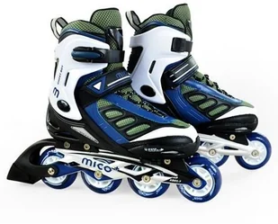 Rolki dla chłopców marki Mico  z możliwością regulacji rozmiaru. Rolki dedykowane początkującym. Wykonane z bardzo dobrej jakosci materiałów powodują, iż dopasowują się do stopy i gwarantują odpowiednią wentylację . But posiada 3-stopniowe zapięcia - klamra, sznurowadła i rzep, zabezpieczają przed przypadkowym odpięciem. Aby zmienić rozmiar wystarczy użyć tylko jednego guzika.