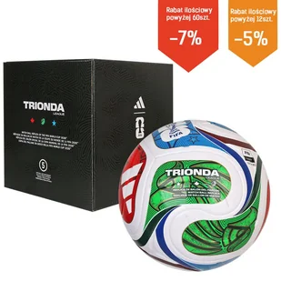 adidas TRIONDA League Box World Cup JD8045 – piłka treningowa rozmiar 5Piłka adidas TRIONDA League Box World Cup JD8045 w rozmiarze 5 to solidny wybór dla graczy trenujących na naturalnej trawie. Z laminowaną powłoką TPU i bezszwową konstrukcją zapewnia przewidywalny lot i wytrzymałość podczas intensywnych sesji. Design inspirowany Mistrzostwami Świata FIFA 2026 dodaje motywacji, a eleganckie pudełko ułatwia przechowywanie. Kluczowe korzyściTeksturowana powierzchnia poprawia czucie piłki i kontrolę podczas dryblingu oraz podań. Bezszwowa konstrukcja TSBE zwiększa trwałość i utrzymuje kształt po wielu godzinach gry.