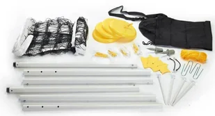 Zestaw zawiera wszystkie niezbędne elementy montażowe do prawidłowego złożenia siatki i wyznaczenia linii boiska do gry.