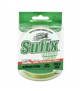 Plecionki Sufix Feeder Braid Green 150m 0,08 mm Plecionka Feeder Braid Green marki SUFIX Feeder Braid jest plecionką z włókien HMPE i Gore® Performance. Dzięki gęstości włókien Gore® Performance, które są dwa razy cięższe od włókien HMPE, plecionka szybko tonie. Odporność na ścieranie włókien Gore® Performance zapobiega zrywaniu Feeder Braid na zaczepach. Włókna HMPE mają ogromną wytrzymałość linearną, która umożliwia stosowanie niewielkich średnic. Nie rozciąga się, dzięki temu brania są lepiej wyczuwalne.