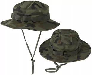 Model: Kapelusz Wojskowy z regulacją obwodu Marka: Dominator®, Polska Stan: Nowy / 100% oryginalny Materiał: 56% bawełna, 44% poliester Technologia Rip-Stop Specyfikacja militarna - Wysoka jakość Szerokie rondo Taśma z gumy na obwodzie kapelusza do przymocowania drobnego ekwipunku lub elementów maskowania Paski na wierzchu kapelusza na maskowanie lub moskitierę Cztery metalowe, nierdzewne wywietrzniki z siatką Regulowana linka ze stoperem pod brodą Obwód regulowany za pomocą linki ze stoperem Solidne szycia Obwód maksymalny: S/M: 58 cm, L/XL: