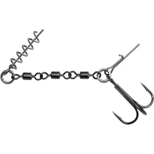 Podwójna dozbrojka z wkrętem i pinami. Zastosowanie kilku krętlików pozwoliło uzyskać bardzo mocne połączenie, które eliminuje możliwość wytworzenia zjawiska dźwigni podczas holu, dodatkowo stabilizując gumę. Rozmiar XL dedykowany do największych przynęt.