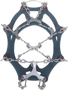 stal; Waga na parę: 320 g; Zakres dostawy: W zestawie: worek do pakowania; Szczegóły: dla lekkich butów rozmiar 36 - 40, dla butów izolowanych rozmiar 35 - 39, 11 kołków o długości 1 cm, włączanie i wyłączanie w ciągu kilku sekund, Uchwyt na pięcie dla jeszcze łatwiejszego zakładania i zdejmowania, stabilna płyta pięty, idealny do stosowania z mocnymi butami lub butami zimowymi, Łańcuch i kolce materiałowe: