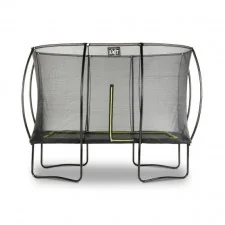 Markowa holenderska TRAMPOLINA prostokątna o wymiarach 214 x 305 cm Trampolina Silhouette black Trampolina Silhouette Exit - prostokątna trampolina na czterech solidnych podwójnych nogach w kształcie litery W, z zielonym fluorescencyjnym brzegiem i zamkiem. Kształtem przypomina wcięcie w tali - stąd jej nazwa - Silhouette (z ang. sylwetka, figura). Dodatkowy atut stanowi biegnąca dookoła batuty osłona na sprężyny, posiadająca system ochrony stopy (FPS), który został opracowany specjalnie przez EXIT Toys. Ten unikalny system ma za zadanie uniemożliwić zaplątanie się stóp w sprężyny podczas skakania. Dane techniczne prostokątnej trampoliny Silhouette Exit: