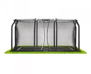 Dobrze przemyślany koncept krawędzi ochronnej z wbudowanym systemem przepływu powietrza zapewnia optymalną cyrkulację powietrza. Dzięki swojej prostokątnej formie można ją w bardzo prosty sposób umocować w ziemi. Nadaje się idealnie do niewielkich ogrodów. Trampolina o kształcie prostokątnym. System "Air Performance " dla komfortu skakania.