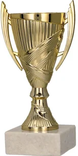 Klasyczny, złoty puchar wykonany z wysokogatunkowego, trwałego plastiku. Elegancki kielich typu conical z wygodnymi uszami. Świetnie sprawdzi się jako puchar dla zwycięzców na różnego rodzaju turniejach i konkursach.