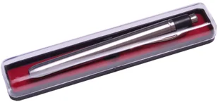 Metalowa latarka diagnostyczna w eleganckim plastikowym opakowaniu. Zasilanie 2 baterie AAA.