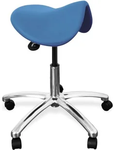 Taboret lekarski Juventas JDT1 z siedziskiem typu siodło i regulacją wysokości na podstawie chromowanej z kółkami Taboret lekarski Juventas JDT1 oparty jest na stabilnej, pięcioramiennej podstawie stalowej pokrytej chromem i wyposażonej w kółka. Posiada obrotowe siedzisko typu siodło z pneumatyczną regulacją wysokości dźwignią pod siedziskiem oraz z regulacją kąta nachylenia siedziska (mechanizm TILT). Ergonomiczne siedzisko koziołka wykonane jest z poliuretanu o właściwościach przeciwpoślizgowych o podwyższonej odporności na ścieranie. Jest prosty w utrzymaniu czystości i odporny na środki czyszczące, także do dezynfekcji powierzchni. Taboret medyczny JDT1 znajduje zastosowanie między innymi w gabinetach lekarskich i zabiegowych oraz w pozostałych placówkach medycznych.