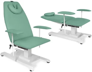 JFZ 1 rozkładany fotel zabiegowy do badania pacjenta i zabiegów z regulacją oparcia Fotel zabiegowy JFZ 1 z 2-częściowym leżem-siedziskiem, wyposażony w regulowane i rozkładane do pozycji leżącej oparcie pod plecy z miękkim podgłówkiem oraz w podłokietniki regulowane w pionie i w poziomie. Wszystkie części leża-siedziska fotela zabiegowego oraz podłokietniki pokryte są bezszwową tapicerką z atestowanego materiału skóropodobnego lub winylowego. W fotelu zabiegowym zastosowano stabilną ramę z profili stalowych lakierowanych proszkowo, posiadającą w podstawie podgumowane stopki umożliwiające poziomowania fotela. Fotel zabiegowy można doposażyć w wysięgnik z wieszakiem do kroplówek, regulowany uchwyt na podkłady higieniczne w rolce montowany za oparciem fotela oraz w kółka z blokadą (hamulcem). Fotel zabiegowy JFZ 1 jest wyrobem medycznym zgodnie z wymaganiami zasadniczymi dla wyrobów medycznych i w rozumieniu ustawy o wyrobach medycznych, zgłoszonym do Rejestru Wyrobów Medycznych prowadzonego przez Urząd Rejestracji Produktów Leczniczych, Wyrobów Medycznych i Produktów Biobójczych, wyposażonym w deklarację zgodności producenta i opatrzonym znakiem CE.