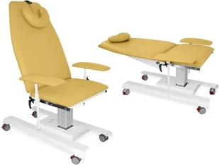 JFZ 3 rozkładany fotel zabiegowy do badania pacjenta i zabiegów z regulacją oparcia i elektryczną regulacją wysokości Fotel zabiegowy JFZ 3 z 2-częściowym leżem-siedziskiem o wysokości regulowanej elektrycznie bezprzewodowym pilotem ręcznym, wyposażony w regulowane i rozkładane do pozycji leżącej oparcie pod plecy z miękkim podgłówkiem oraz w podłokietniki regulowane w pionie i w poziomie. Wszystkie części leża-siedziska fotela zabiegowego oraz podłokietniki pokryte są bezszwową tapicerką z atestowanego materiału skóropodobnego lub winylowego. W fotelu zabiegowym zastosowano stabilną ramę kolumnową z profili stalowych lakierowanych proszkowo, posiadającą w podstawie podgumowane stopki umożliwiające poziomowania fotela. Fotel zabiegowy można doposażyć w wysięgnik z wieszakiem do kroplówek, regulowany uchwyt na podkłady higieniczne w rolce montowany za oparciem fotela oraz w kółka z blokadą (hamulcem). Fotel zabiegowy JFZ 3 jest wyrobem medycznym zgodnie z wymaganiami zasadniczymi dla wyrobów medycznych i w rozumieniu ustawy o wyrobach medycznych, zgłoszonym do Rejestru Wyrobów Medycznych prowadzonego przez Urząd Rejestracji Produktów Leczniczych, Wyrobów Medycznych i Produktów Biobójczych, wyposażonym w deklarację zgodności producenta i opatrzonym znakiem CE.