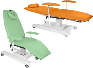 JFZ 4 rozkładany fotel zabiegowy do badania pacjenta i zabiegów z elektryczną regulacją wysokości oraz regulacją oparcia i podnóżka Fotel zabiegowy JFZ 4 z 3-częściowym leżem-siedziskiem o wysokości regulowanej elektrycznie bezprzewodowym pilotem ręcznym, wyposażony w regulowane i rozkładane do pozycji leżącej oparcie pod plecy z miękkim podgłówkiem oraz w podnóżek z regulacją, a także w podłokietniki regulowane w pionie i w poziomie. Wszystkie części leża-siedziska fotela zabiegowego oraz podłokietniki pokryte są bezszwową tapicerką z atestowanego materiału skóropodobnego lub winylowego. W fotelu zabiegowym zastosowano stabilną ramę z profili stalowych lakierowanych proszkowo, posiadającą w podstawie podgumowane stopki umożliwiające poziomowania fotela. Fotel zabiegowy można doposażyć w wysięgnik z wieszakiem do kroplówek, regulowany uchwyt na podkłady higieniczne w rolce montowany za oparciem fotela oraz w kółka z blokadą (hamulcem). Fotel zabiegowy JFZ 4 jest wyrobem medycznym zgodnie z wymaganiami zasadniczymi dla wyrobów medycznych i w rozumieniu ustawy o wyrobach medycznych, zgłoszonym do Rejestru Wyrobów Medycznych prowadzonego przez Urząd Rejestracji Produktów Leczniczych, Wyrobów Medycznych i Produktów Biobójczych, wyposażonym w deklarację zgodności producenta i opatrzonym znakiem CE.
