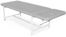 Riva C wysoka i szeroka kozetka lekarska 2-częściowa z regulowanym zagłówkiem Wysoka i szeroka kozetka lekarska o stałej wysokości wykonana na stabilnej konstrukcji z lakierowanych proszkowo profili stalowych. Kozetka posiada 2-częściowe leże wypełnione elastyczną pianka PU z regulowanym w zakresie +/- zagłówkiem wyposażonym w otwór do oddychania z zatyczką. Leże pokryte jest bezszwową tapicerką z atestowanego i zmywalnego materiału skóropodobnego (paleta Standard Line) lub winylowego (paleta Exclusive Line). Kozetka wyposażona jest w podgumowane stopki z jedną stopką regulacyjną do poziomowania kozetki na nierównej powierzchni. W opcjach wyposażenia dodatkowego kozetkę za dopłatą można doposażyć w uchwyt na podkłady higieniczne w rolce o szerokości 70 cm.
