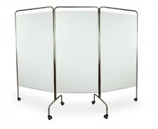 Parawan lekarski Juventas PRCH3 3-skrzydłowy 165x200 cm z ekranami z elanobawełny w metalowej ramie chromowanej z kółkami Parawan medyczny Juventas PRCH3 3-skrzydłowy o wysokości 165 cm szerokości 201 cm (trzy skrzydła po 67 cm), wykonany w ramie z profili metalowych (rurka) wykończonych chromem. Parawan wyposażony jest w ekrany (zasłony) z tkaniny wykonanej z elanobawełny w 6 kolorach do wyboru. Parawan oparty jest na 6 nogach wyposażonych w kółka do przemieszczania parawanu w obrębie gabinetu i placówki. Parawan lekarski PRCH3 znajduje zastosowanie w gabinetach lekarskich i zabiegowych oraz w innych placówkach medycznych i opiekuńczych, a także w salonach kosmetycznych, gabinetach masażu i salonach tatuażu. Parawan lekarski PRCH3 jest wyrobem medycznym zgodnie z wymaganiami zasadniczymi dla wyrobów medycznych i w rozumieniu ustawy o wyrobach medycznych, zgłoszonym do Rejestru Wyrobów Medycznych prowadzonego przez Urząd Rejestracji Produktów Leczniczych, Wyrobów Medycznych i Produktów Biobójczych, wyposażonym w deklarację zgodności producenta i opatrzonym znakiem CE.