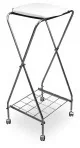 Wózek szpitalny Juventas WZ1 pojedynczy z workiem na odpady medyczne lub brudną bieliznę Wózek koszowy Juventas WZ1 pojedynczy na odpady medyczne lub brudną bieliznę wykonany na chromowanym stelażu stalowym i wyposażony w uchwyt worka o pojemności 120 litrów z pokrywą wykonaną z tworzywa sztucznego. Pokrywa worka dostępna jest w kolorze białym lub niebieskim. Na wyposażeniu jeden worek foliowy o pojemności 120 litrów. Wózek WZ1 stosowany jest w placówkach opiekuńczych i na oddziałach szpitalnych do zbierania i tymczasowego przechowywania brudnej bielizny. Może być także stosowany w placówkach ochrony zdrowia jako pojemnik workowy na różnego rodzaju odpady.