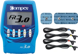 Model Compex FIT 3. 0 to przewodowy elektrostymulator mięśni, który jest rozbudowaną wersją Compex FIT 1. 0. Dysponuje czterema kanałami i dwudziestoma programami (9 programów Fitness wzmacniających mięśnie, 8 programów Łagodzenia bólu, 2 programy Odnowa/Masaż i dodatkowy program w ramach Rehabilitacji). Aparat wzbogacony został o funkcję MI-Scan, pozwalającą dobrać parametry do kondycji stymulowanego obszaru (wybranej grupy mięśniowej). Polecany jest szczególnie dla fanów fitnessu oraz wszystkich osób, które dbają o swój wygląd i zdrowie.