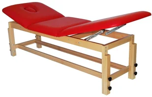 Leżanka medyczna WSTech LD-R02 Standard z zagłówkiem i podnóżkiem oraz regulacją wysokości Leżanka medyczna WSTech LD-R02 Standard o szerokości 55 cm ze skokową regulacją wysokości w zakresie od 55 do 75 cm. Leżanka wykonana jest na stabilnej konstrukcji z drewna bukowego lakierowanego w 3 wariantach kolorystycznych do wyboru,. Posiada trzyczęściowe leże z zagłówkiem i podnóżkiem regulowanymi skokowo za pomocą mechanizmów typu rastomat. Zagłówek wyposażony jest w otwór z estetyczną zatyczką. Wypełnienie leża stanowi elastyczna pianka PU o grubości 5 cm.