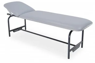 LM-01 Plus Max wysoka i szeroka kozetka lekarska metalowa z maksymalnym obciążeniem do 220 kg i regulowanym zagłówkiem Wysoka i szeroka kozetka lekarska o stałej wysokości z maksymalnym dopuszczalnym obciążeniem statycznym do 220 kg (waga pacjenta), wykonana na lakierowanym proszkowo stelażu z profili stalowych o przekroju rurki. Posiada 2-częściowe leże z zagłówkiem regulowanym skokowo przy pomocy rastomatu. Bezszwowa i zmywalna tapicerka z atestowanego materiału skóropodobnego lub winylowego z wkładem piankowym z poliuretanu. Nogi kozetki zakończone stopkami przeciwpoślizgowymi, w tym jedna stopka z regulacją poziomowania. W opcjach dodatkowych kozetkę lekarską można doposażyć w wieszak na podkłady higieniczne montowany w tylnej części kozetki i w dolną półkę na akcesoria, a także w 4 skrętne kółka kierunkowe z blokadą jazdy (hamulcem) zamiast stopek przeciwpoślizgowych.