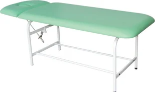 LM-03 H-Max wysoka kozetka lekarska metalowa z regulowanym zagłówkiem w zakresie +/- Wysoka kozetka lekarska o stałej wysokości wykonana na lakierowanym proszkowo stelażu z profili stalowych o przekroju rurki. Posiada 2-częściowe leże z regulowanym zagłówkiem w zakresie +/- przy pomocy mechanizmu mimośrodowego. Bezszwowa i zmywalna tapicerka z atestowanego materiału skóropodobnego lub winylowego z wkładem piankowym z poliuretanu. Nogi kozetki zakończone stopkami przeciwpoślizgowymi, w tym jedna stopka z regulacją poziomowania. W opcjach dodatkowych kozetkę lekarską można doposażyć w wieszak na podkłady higieniczne montowany w tylnej części kozetki i w dolną półkę na akcesoria, a także w 4 skrętne kółka kierunkowe z blokadą jazdy (hamulcem) zamiast stopek przeciwpoślizgowych.