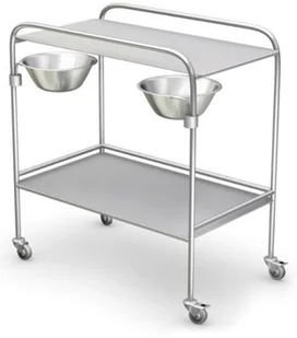 Stolik zabiegowy ZTM Tech-Med SZ-02KO ze stali kwasoodpornej z 2 blatami zabiegowymi i 2 miskami na odpady Stolik-wózek zabiegowy ZTM Tech-Med SZ-02KO do zastosowania w gabinetach lekarskich i zabiegowych, wykonany w całości ze stali kwasoodpornej w gatunku 0H18N9. Wyposażony w 2 blaty zabiegowe i w 2 odchylane miski na odpadki oraz w podstawę przejezdną z 4 kółkami kierunkowymi, w tym w 2 kółka z blokadą (hamulcem). Stolik zabiegowy SZ-02KO jest wyrobem medycznym zgodnie z wymaganiami zasadniczymi dla wyrobów medycznych i w rozumieniu ustawy o wyrobach medycznych, zgłoszonym do Rejestru Wyrobów Medycznych prowadzonego przez Urząd Rejestracji Produktów Leczniczych, Wyrobów Medycznych i Produktów Biobójczych, wyposażonym w deklarację zgodności producenta i opatrzonym znakiem CE. Zalety stolika-wózka zabiegowego ZTM Tech-Med SZ-02KO solidna i stabilna konstrukcja ze stali kwasoodpornej 2 blaty zabiegowe wykonane ze stali kwasoodpornej 2 odchylane miski o poj. 3l na odpadki wykonane ze stali kwasoodpornej obustronne relingi górne (uchwyty) do przetaczania stolika przejezdna podstawa z kółkami kierunkowymi 2 kółka z blokadą (hamulcem) certyfikowany wyrób medyczny darmowa dostawa na terenie Polski Stal kwasoodporna 0H18N9 (AISI 304) Stal kwasoodporna 0H18N9 (AISI 304) to austenityczna stal wysokostopowa chromowo-niklowa (PN-71/H-860) o wysokiej odporności na korozję, w szczególności na korozję atmosferyczną i wody morskiej, korozję roztworów alkalicznych i słabszych kwasów oraz wszystkich produktów żywnościowych.