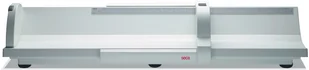 Jego powierzchnia jest szeroka, a podniesione i łagodnie zaokrąglone boki z łatwością pozycjonują niemowlę we właściwym położeniu. Ogranicznik stóp, umieszczony w dwóch prowadnicach, płynnie przesuwa się na rolkach po skali. Jego blokada pozwala na późniejsze odczytanie wyniku pomiaru, gdy opieka nad dzieckiem stoi na pierwszym planie. Wszystkie części urządzenia są niezwykle trwałe i odporne.