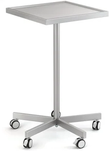 A-01ST mobilny asystor medyczny z blatem zabiegowym Asystor medyczny A-01ST z blatem zabiegowym do uniwersalnego zastosowania w gabinetach lekarskich i zabiegowych. Blat asystora wykonany jest ze stali lakierowanej proszkowo na kolor wybrany z palety RAL. Oparty na 5-ramiennej podstawie stalowej wyposażonej w kółka z tworzywa sztucznego z oponkami nierysującymi twardych powierzchni, w tym trzy kółka z hamulcem (blokadą jazdy). Zaprojektowany i wykonany z wysoką dbałością o szczegóły. Ze względu na estetykę wykonania asystora oraz jego uniwersalny design z powodzeniem wkomponuje się w przestrzeń każdego gabinetu lekarskiego lub zabiegowego.