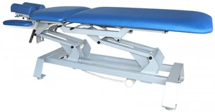 Stół rehabilitacyjny WSTech CHIRO 3-częściowy z elektryczną regulacją wysokości pozycją Pivota do chiropraktyki i osteopatii oraz masażu leczniczego i terapii manualnych Stacjonarny stół rehabilitacyjny WSTech CHIRO do chiropraktyki i osteopatii oraz masażu leczniczego i innych technik terapii manualnej z elektryczną regulacją wysokości przewodowym pilotem ręcznym lub nożnym (opcja), a także z ramy sterującej wokół stołu (opcja). Wykonany na stabilnej ramie stalowej lakierowanej proszkowo. Wypełnienie leża stanowi elastyczna pianka PU wysokiej jakości. Leże o trzech szerokościach do wyboru pokryte jest bezszwową tapicerką z atestowanego materiału skóropodobnego w kolorze do wyboru z palety standard lub palety Prestige. Podstawa stołu rehabilitacyjnego posiada w standardzie podgumowane stopki antypoślizgowe z możliwością stabilizacji i poziomowania stołu.